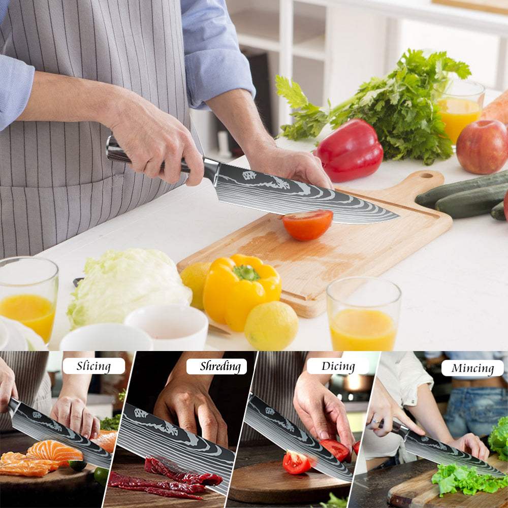 - πͺ PROFESSIONAL-GRADE PERFORMANCE & RAZOR SHARPNESS: Crafted from premium high carbon stainless steel, this knife set holds an exceptionally sharp, durable edge that slices, dices, and chops effortlessly through meats, vegetables, and herbs, minimizing effort and maximizing precision.