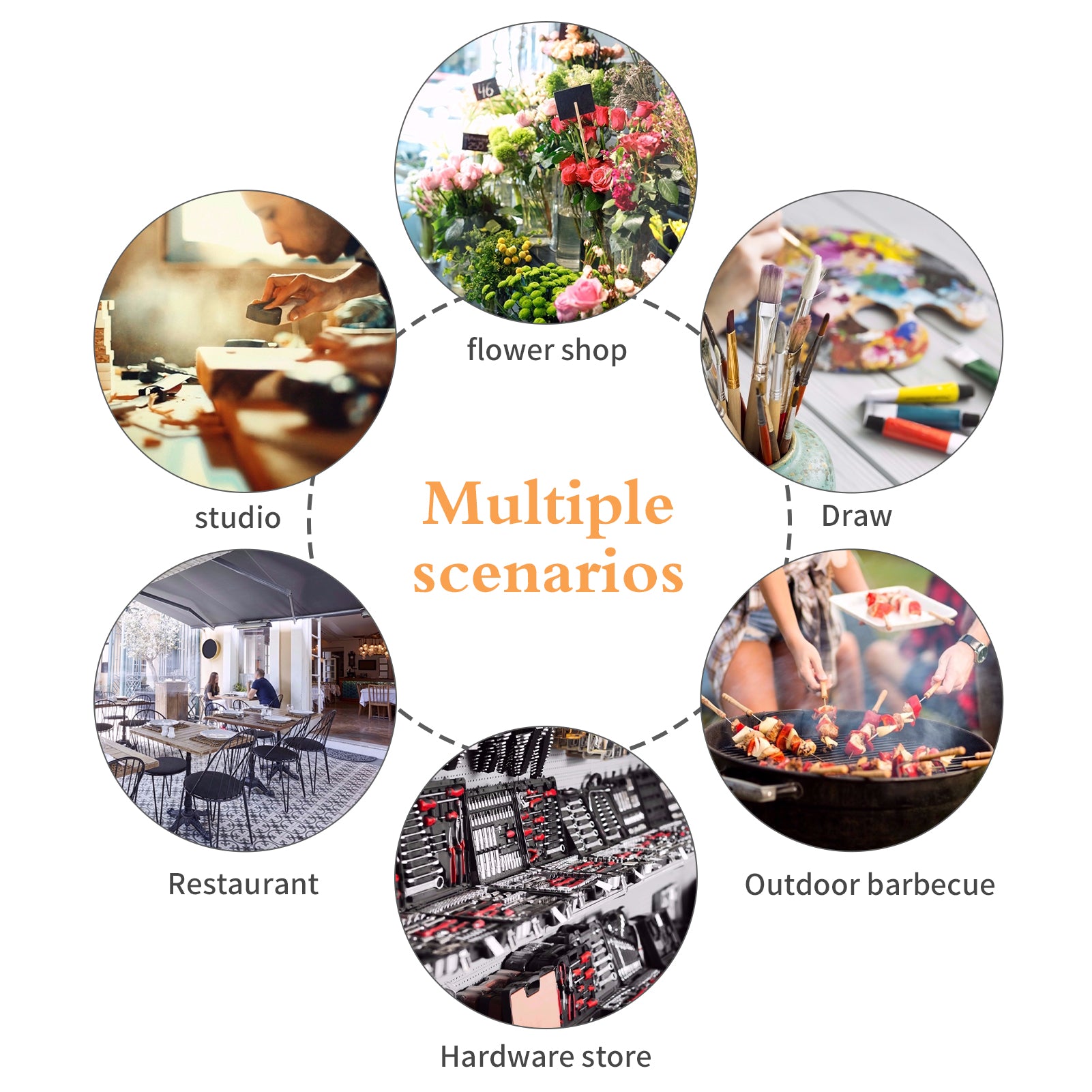 | Carpentry Aprons With Pockets: 4 reinforced pockets and 8 slots to safely organize your hammers, screws, pencils, knives, screwdriver, drilling bits, and other tools, and help to keep your tools organized and improve your work efficiency. |