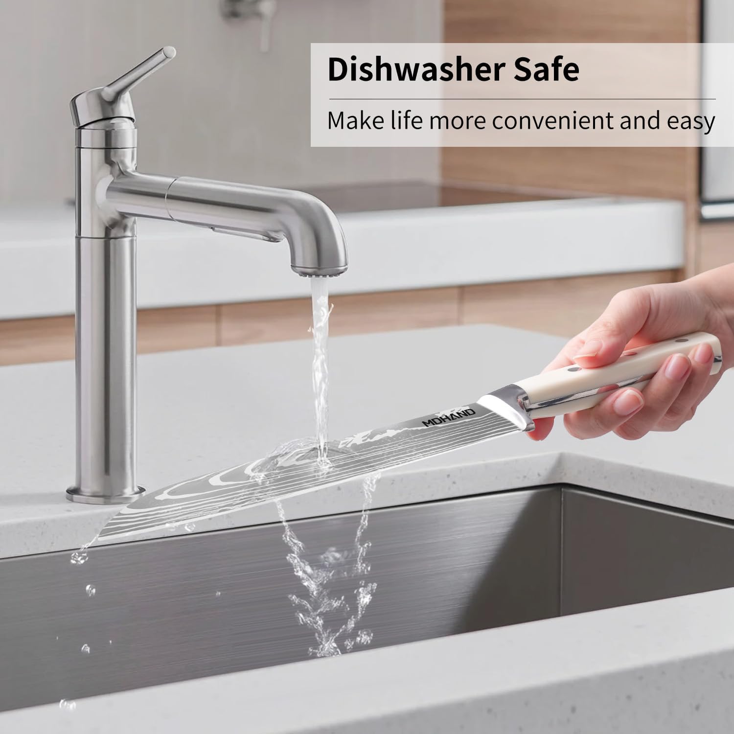 - Einfache Pflege: Unser Messerset ist einfach zu reinigen und zu warten. Handwäsche mit warmem Wasser und neutralem Waschmittel, abspülen und an der Luft trocknen.